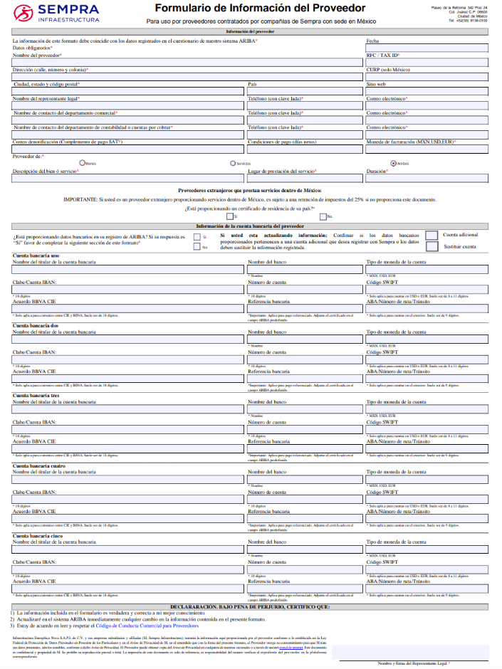SI-Formulario de Información del Proveedor (Varias Cuentas):
